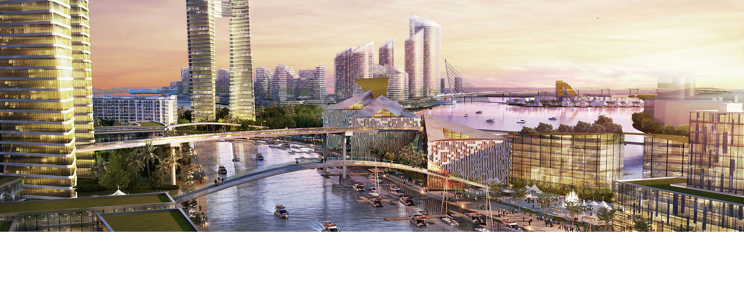 Under a dynamic development Master-plan a new waterfront city, spreading 4,300 acres will be developed in phases over a